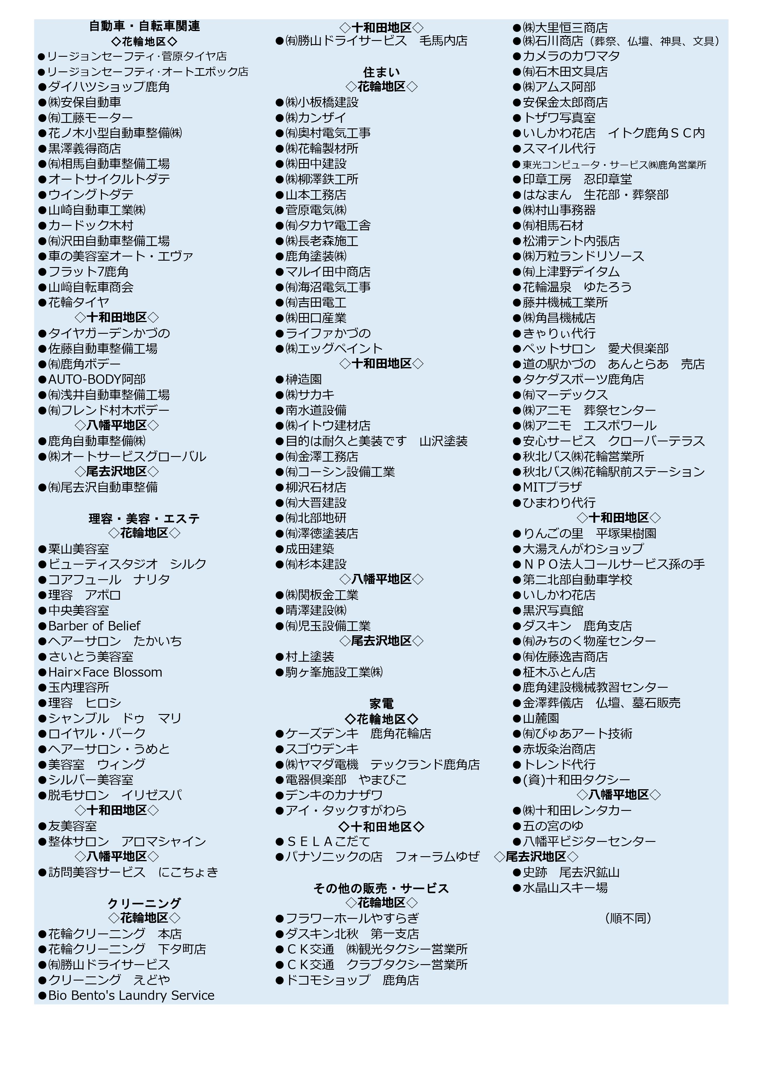 | いとく 鹿角ショッピングセンター たんぽぽ | TEL:30-1166 | |
